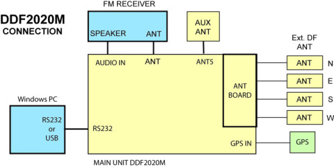 The user must provide a NB FM receiver, 4 antennas with mounts for external DF antenna unit and a PC for DF bearing (Windows OS). DDF2020 display program further requires a GPS receiver with NMEA 4800 baud output.